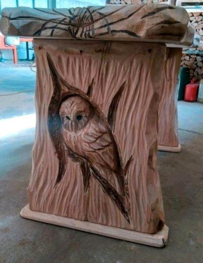 Alle Arbeiten werden mit der Kettensäge produziert – was man sich bei dieser Vielfältigkeit und detailierten Ausarbeitung unserer Skulpturen kaum vorstellen kann.